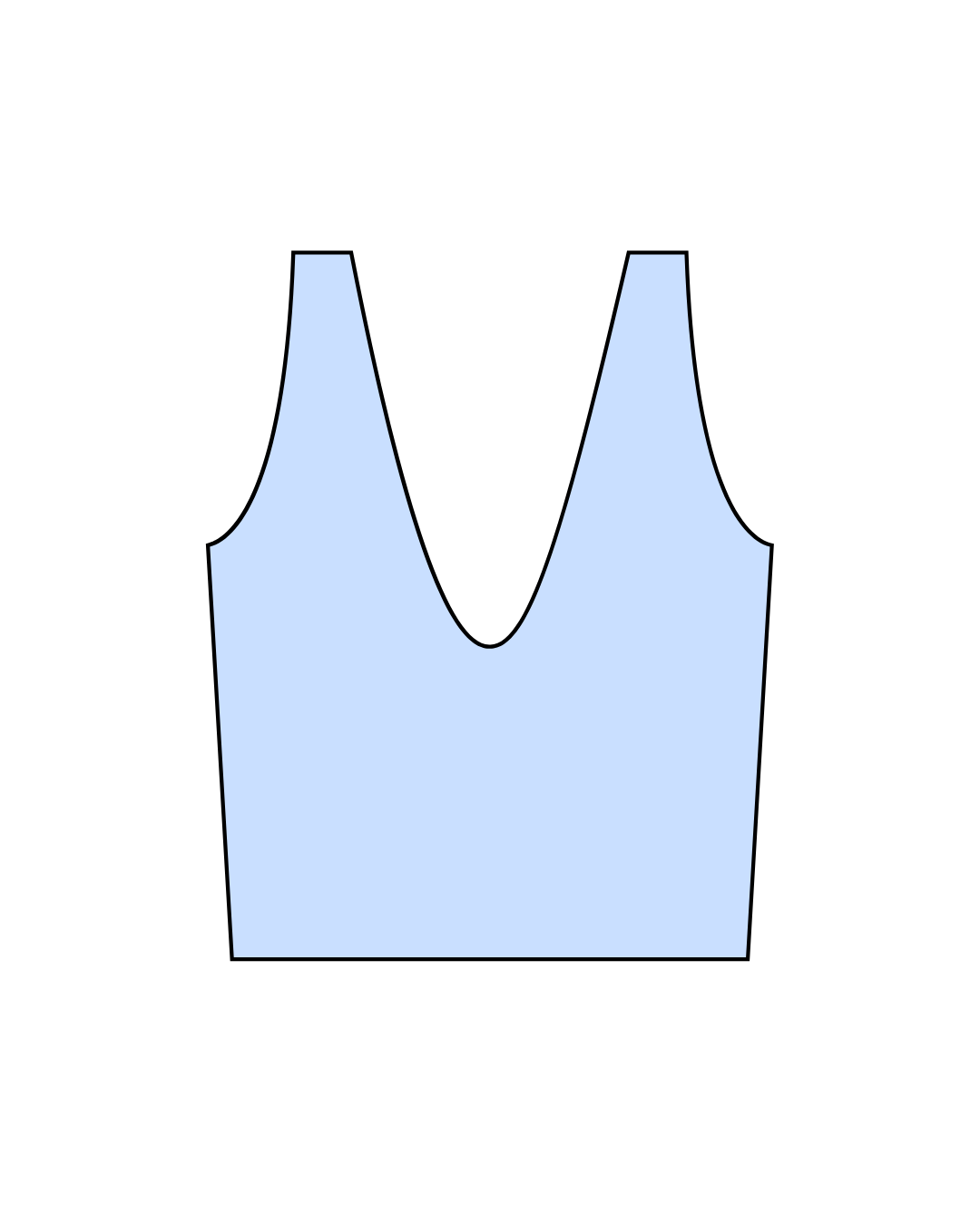 - Either side can be worn in front, either a square neckline or a deep v-neck/scoop.