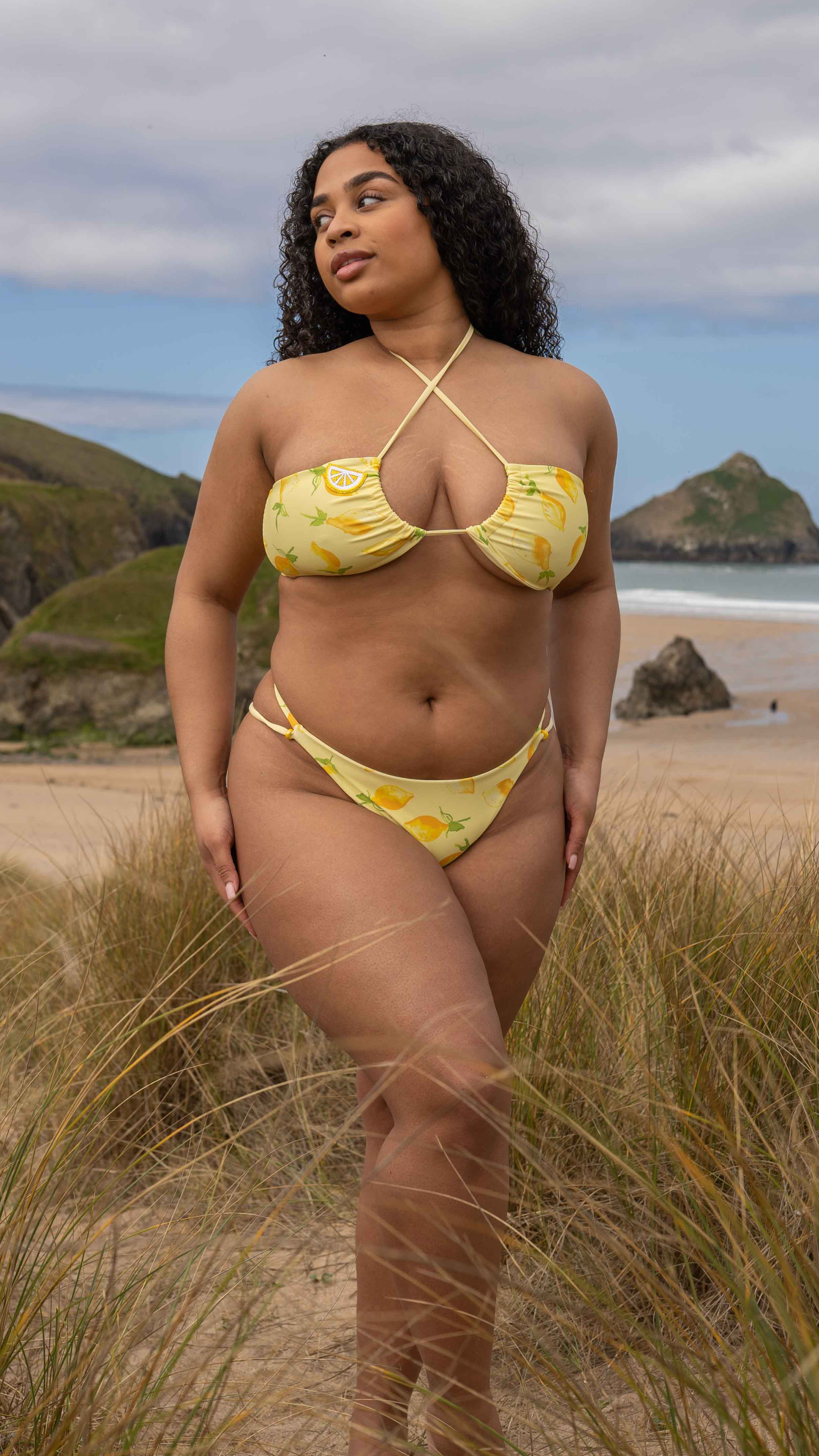 The Limoncello Bikini Bottom is designed and handmade by Ashlea in the UK, featuring a lemon printed eco-fabric with a minimal, clean finish. Designed to slip on with double elasticated straps, this bikini bottom offers a lightweight feel with subtle detailing through a lemon embellishment at the centre back. Fully lined with a double layered finish, it’s designed to sit comfortably against the body.